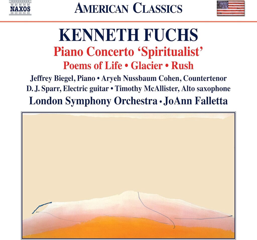 ケネス・フックス(1956-)は、2019年の第61回グラミー賞ベスト・クラシカル・コンペンディアム部門を受賞した、アメリカの「人気」現代音楽作曲家である。日本でどのくらい人気なのかは知らないが、NAXOSレーベルで多くの音盤をリリースしており、僕も網羅しているわけではないが、幅広いジャンルで作曲している。何度かグラミー賞はノミネートしており、ジョアン・ファレッタ指揮ロンドン交響楽団が演奏するフックスのアルバムとしては5枚めに当たる、ピアノ協奏曲「スピリチュアリスト」、生命の詩、氷河、ラッシュの4作品を収録した2017年録音盤がついにグラミー賞受賞にいたった。