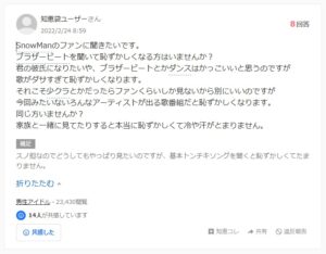 「ブラザービート」もラップの曲なので、特にSnow Manのファンであっても聴いていて恥ずかしいと思う人もいることだろう。「ファンなのに恥ずかしいっておかしいだろ、失礼だ、聴かなきゃいい」みたいに文句を言う人もいると思うが(知恵袋でもいたが)、違うんだよな、ファンだからこそ恥ずかしくなるんだよな。好きでもない人が何しようが別にどうでもいいけど、好きな人達にはいつだって素敵でいてほしくて、その素敵の基準が自分の中にあって、その基準から逸脱してほしくないというワガママを言っているんだよね、こっちは。
