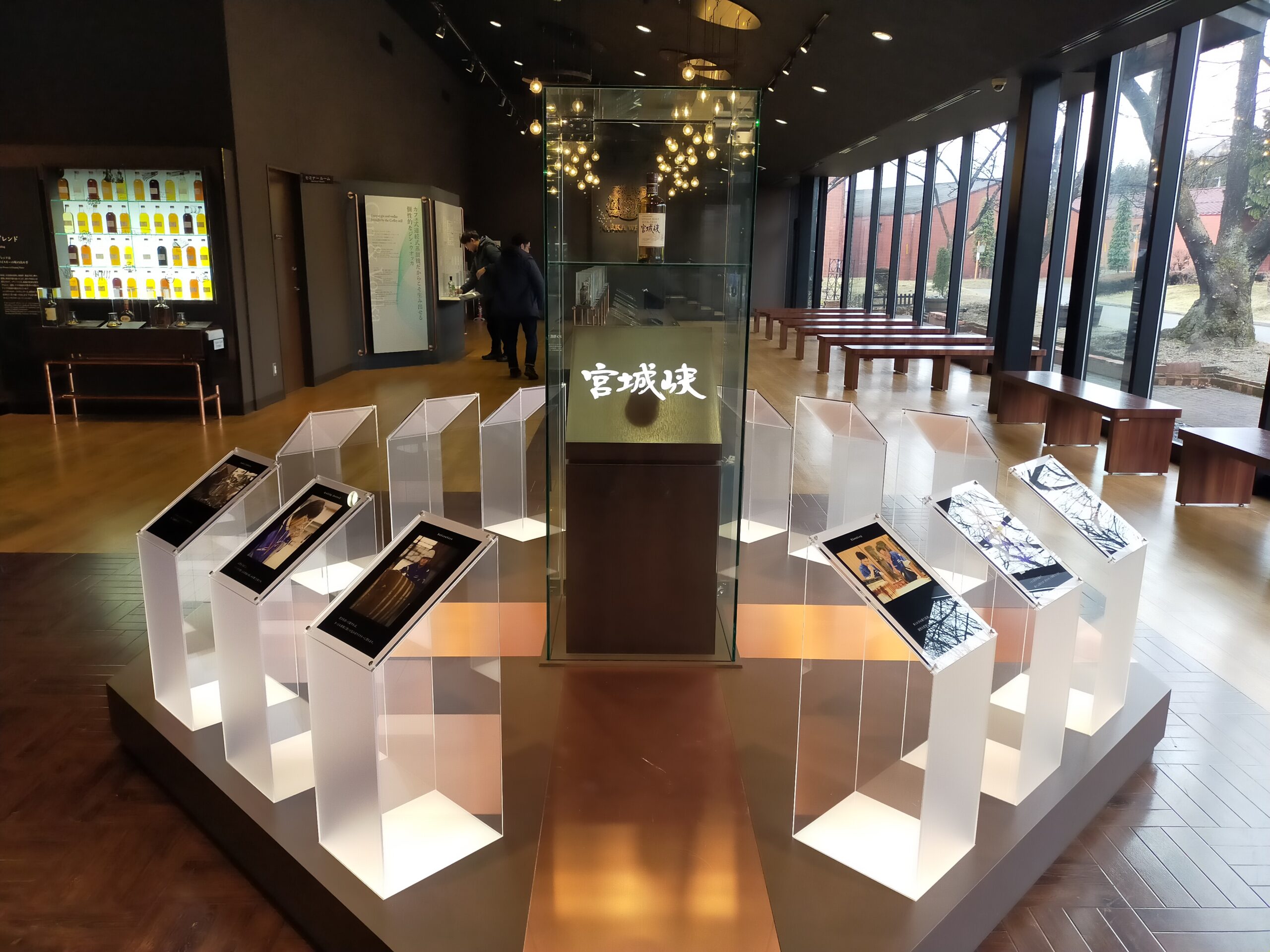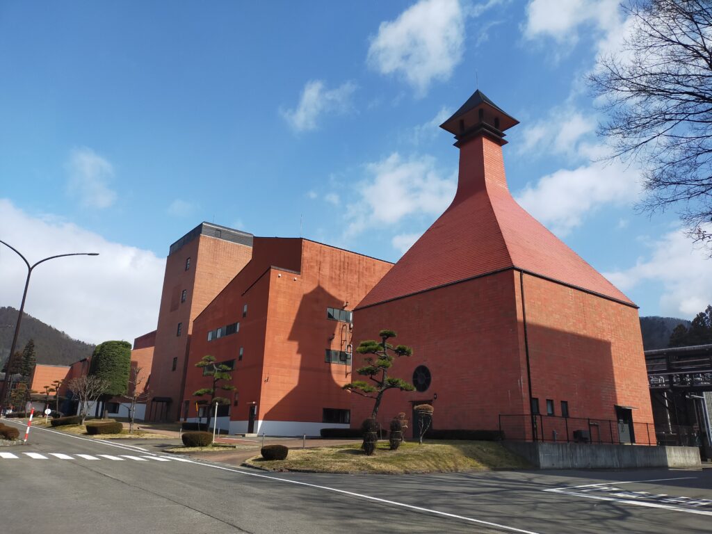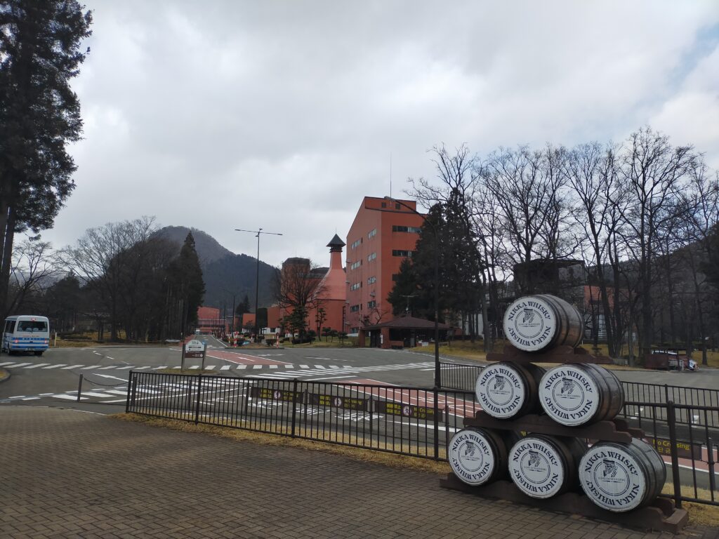 作並駅に着く頃には小雪が舞い始めた。雪は好きではないが、ワクワクしているときに舞う雪はなんか良い。この辺りは作並温泉で有名だそうで、新川(にっかわ、と読む。ニッカウヰスキーとは無関係で、ただの偶然だそう)周辺のウォーキングコースも案内されていた。季節と天気が良くて時間に余裕があったら、蒸留所まで歩いて行くのも気持ち良さそうだ。歩くと40分ほどで着くとのこと。今回は時間との戦いなので(戦記である)、蒸留所が出しているシャトルバスを使う。朝9時頃にこの駅で降りる人は温泉客が数人と、あとはシャトルバスに乗り込んだのが10名ほどだろうか。こんな朝早くから物好きなやつがいるもんだなと、自分のことは棚に上げつつ、駅のすぐ目の前で待っているバスに乗る。9時10分定刻発。出発すると10分もかからないですぐ蒸留所に着くけど、山なのでこれは歩いたら時間かかりそうだ。そして前もって調べていた情報の通り、確かに蒸留所の看板が見えてから見学受付のビジターセンターまでが案外長い。徒歩で行くなら見学開始時間に間に合うようかなり余裕もって行かないといけないだろうね。