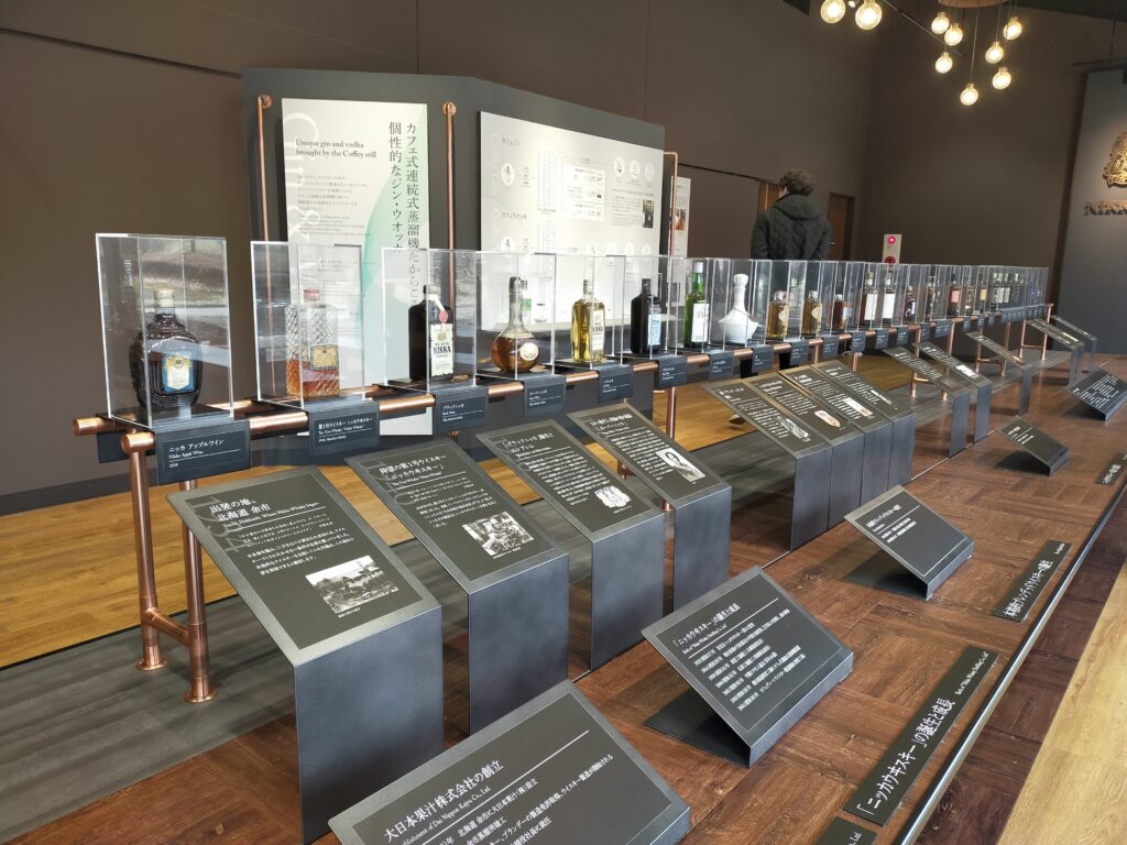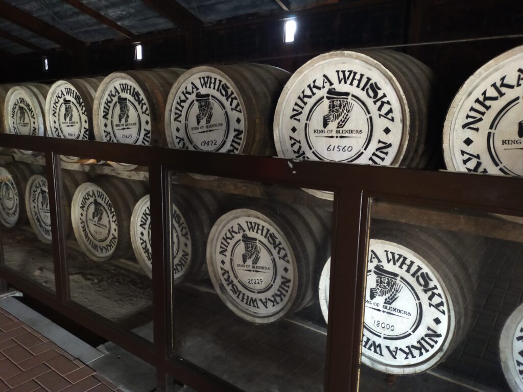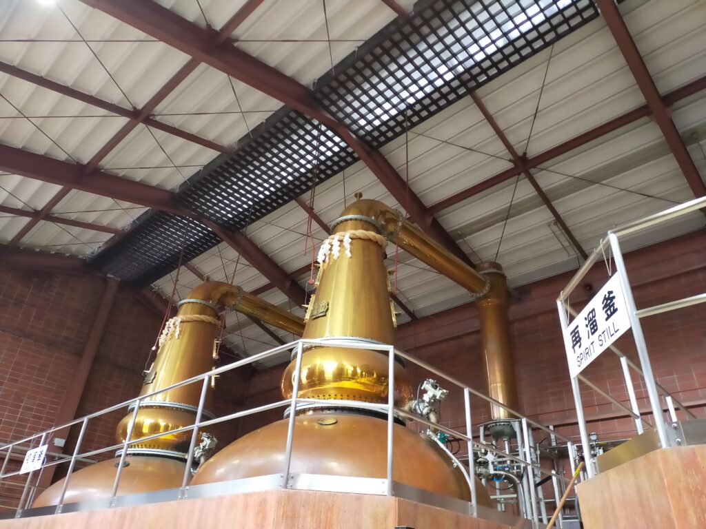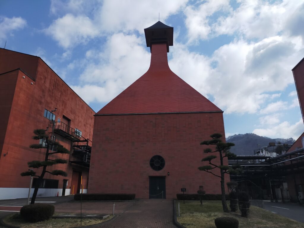 僕は事前にネットで9時半からの見学予約を申し込んでいたけど、当日受付してる人もいたっぽいな。無料のガイドツアーは約70分(蒸溜所見学50分、無料試飲最長20分)。受付を済ませ、開始までの短い時間に、某ぬいぐるみを画角に入れた写真撮影を一生懸命行う。こんなことしてるの僕だけかなと少し恥ずかしい気持ちも無くはなかったが、見学中には貯蔵庫をバックにして知らないぬいぐるみ撮影をしているおっさんもいたので、仲間だなと思ってそっとしておいた。ジャンジャン撮りましょうね! ツアー中は、案内の方が解説しつつ、撮影可能なところでは「ぜひ撮ってください!」とアピールしてくれる。↓のキルン塔のある側は見学申し込みした人しか入れないようになっている。歩きながら、自然を活かした建築にしているという話や、電線は地下に埋めるように竹鶴政孝が指示したという話を聞いた。スコットランドで見た蒸留所をしっかり真似て作っているのだ。あまりネタバレを書いてしまっては行く人のためにならないだろうと思うが、蒸留したてのお酒(ニューポット)の香りを嗅げるところもあったし、またビジターセンター内の展示ではピートで燻した麦芽の香りも嗅げて、目と耳だけでなく鼻でも楽しめる。