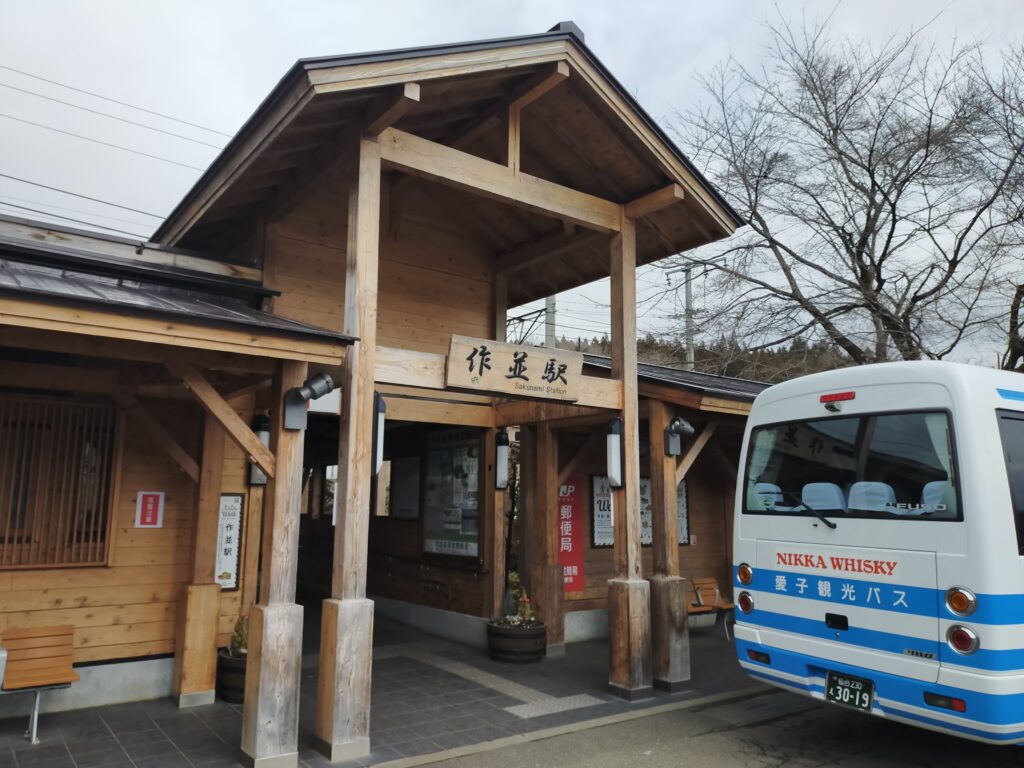 そもそも仙台にはコンサートを聴く目的で行った。そちらの感想記事もあるのでどうぞ、そこでもお酒の話をしてるけど……。祝日の15時開演だったので、開演前に仙台観光するぞという目論見だ。宮城峡蒸留所は仙台市内にあるとはいえ、ぐっと西側の山の方、仙台駅から電車(仙山線)で40分の作並駅が最寄り。そこからはシャトルバスが出ている。電車の本数も多いわけではないし、蒸留所見学コースも1時間ほどなので、仙台駅からは往復の移動と滞在で最低でも3時間以上は見込まなければならない。コンサートに遅れたら本末転倒。ということで、結構シビアな旅程になった。本当なら泊まりで来たかったのだが、僕は毎晩、可能な限り夜は子どもたちと過ごす時間を重視する素敵なパパなので、前乗りはせずに当日始発の新幹線で行くことにしたのだ。始発はやまびこ号盛岡行き。ギリギリ次のはやぶさ号でも間に合いそうだが、仙台駅の在来線乗り換えに慣れてないので、ミスったらおしまいである、ここは安牌で始発。めちゃくちゃ早起きして始発で蒸留所に向かう自分が面白くて、なんかいい。お酒のために早起きするって、ちょっと不思議だ。外まだ真っ暗だよ。僕は何をしているんだろう……(笑)