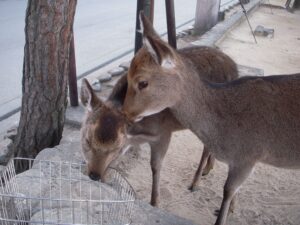 SAKURAO DISTILLERYはこの辺にあるはず。この頃はまだ中国醸造株式会社だったかもしれないし住所も違うかもしれないが、ここに2021年にはSAKURAO DISTILLERYができるはずだ。おっと、急に親近感が湧いてきたぞ(笑) つい最近まで、何となく話は合いそうだけどいまいちお近づきになり難い雰囲気を出していた人と「え!? 君、昔一度会っていたのか! もしかしらた僕ら、子どもの頃にも一回会っていたかもしれないよね! 運命の出会いだね!」なんて話ができそうで、嬉しくなってしまう。なんなら戸河内トンネルももしかしたらこの画角内かもしれない、知らんけど。遠くの山の方にあるかな。まあでも、そんなご縁があるなら、また戸河内か桜尾か、買っても良いかな。安くてうまいし。でもでも、まだイチローズモルト(すなわちポテくまくん)には敵わないよ、もし宮島とか廿日市に僕の心をキュンキュンさせてくれる、かわいいゆるキャラがいればもう少し傾けるかもしれない。どうかな。鹿のキャラとかいないのかしら。昨今の社会情勢を考慮すると、熊は駆除対象だが、鹿は保護対象のようだし、鹿かわいいからな。↓も当時撮った写真。なお一緒に旅行に行ったO君は大学卒業以来一度も連絡取ったことないから、media naranjaではないようだが、そこの鹿さんたち、君たちはどうなの?