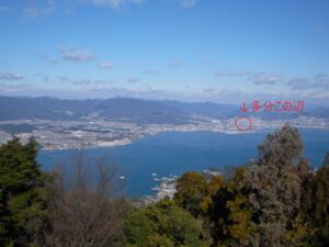 眺めていてふと思った。これ、もしかしてSAKURAO DISTILLERYも映ってるんじゃない? 廿日市でしょ? そう思ってGoogleマップと写真をにらめっこして調べてみた。フェリーが行き来する先は宮島口、そうするとその少し右に見える臨海の高い建物は阿品駅近くの高層マンション群だろう。さらに右側にあるせり出した部分は特徴的な「木材港」で間違いない、そうすると……